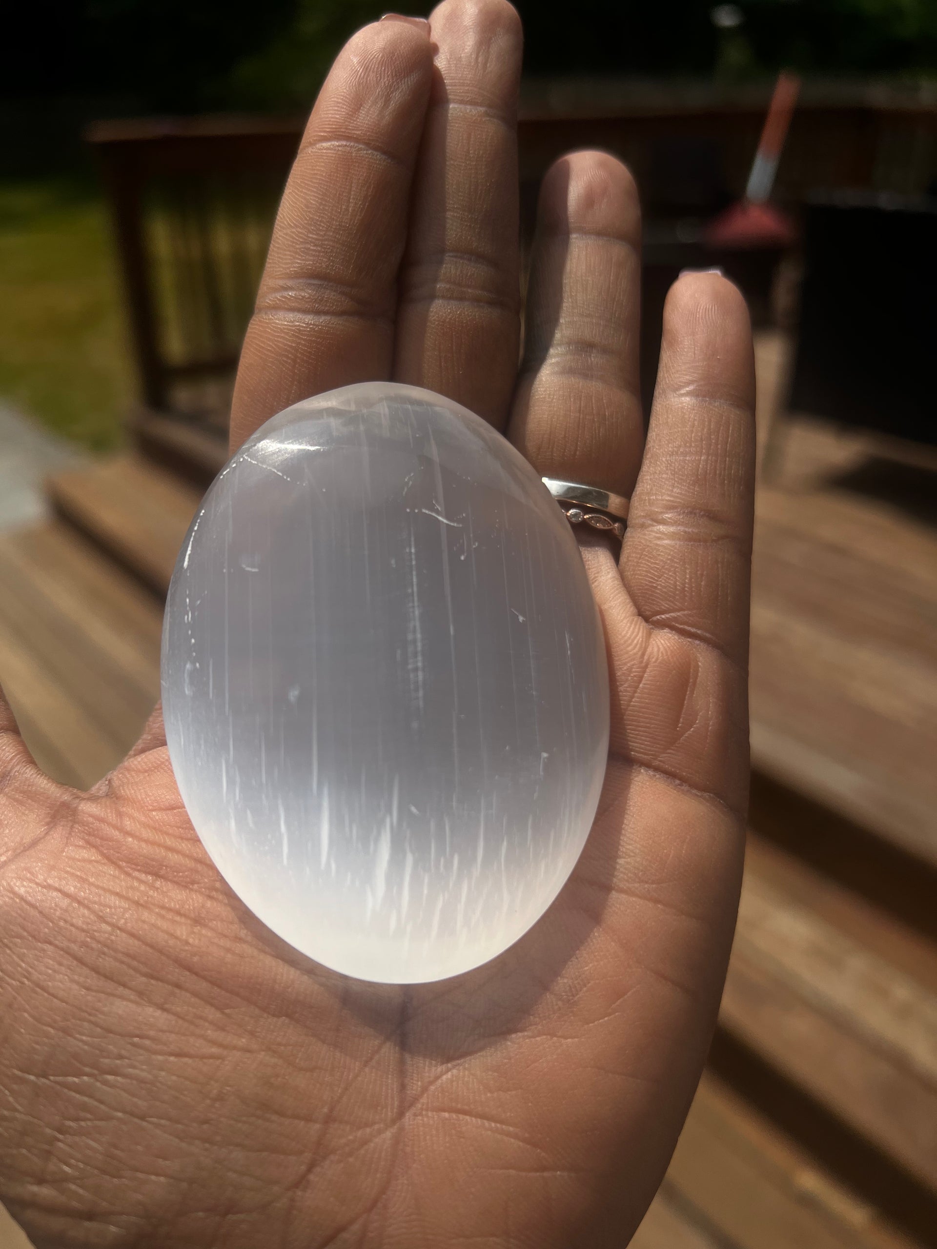 The Selenite Palm Stone is a powerful source of mental clarity and illumination. It is known to open the Crown and Higher Crown Chakras, allowing access to Angelic consciousness and higher guidance. It is also known to promote deep peace, aiding in meditation and spiritual work. With its ability to help clear confusion and gain deeper understanding, the Selenite Palm Stone offers a powerful yet calming source of energy.