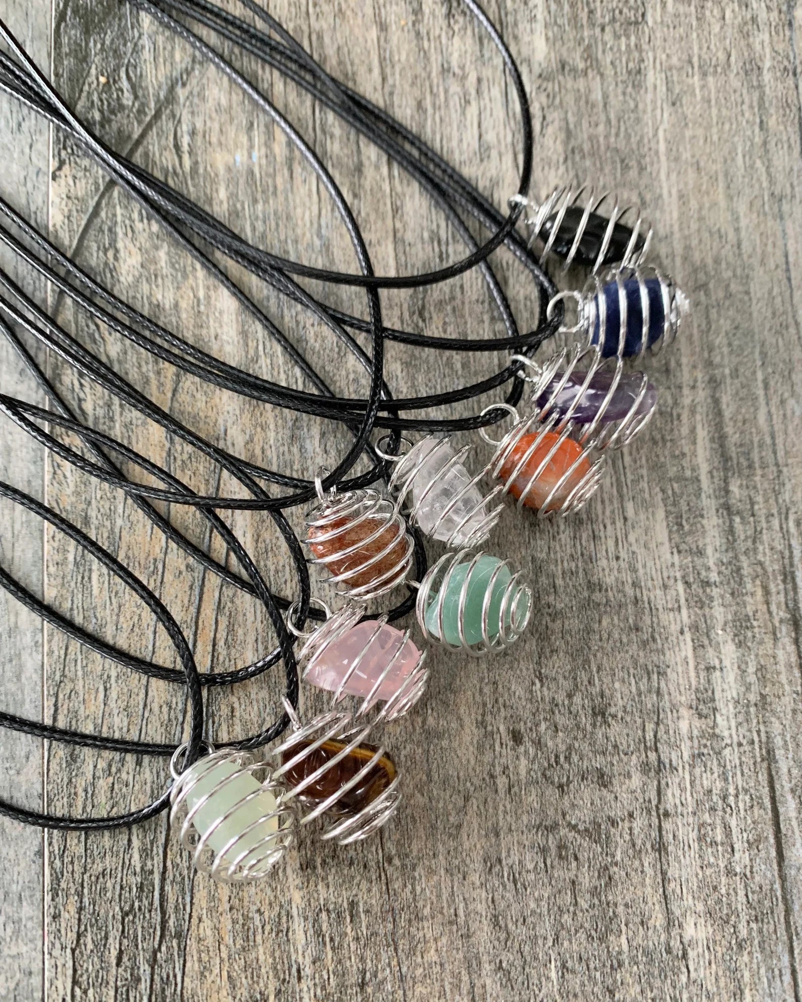 Mystery Cage necklace includes a mystery tumble stone , silver cage and , necklace.