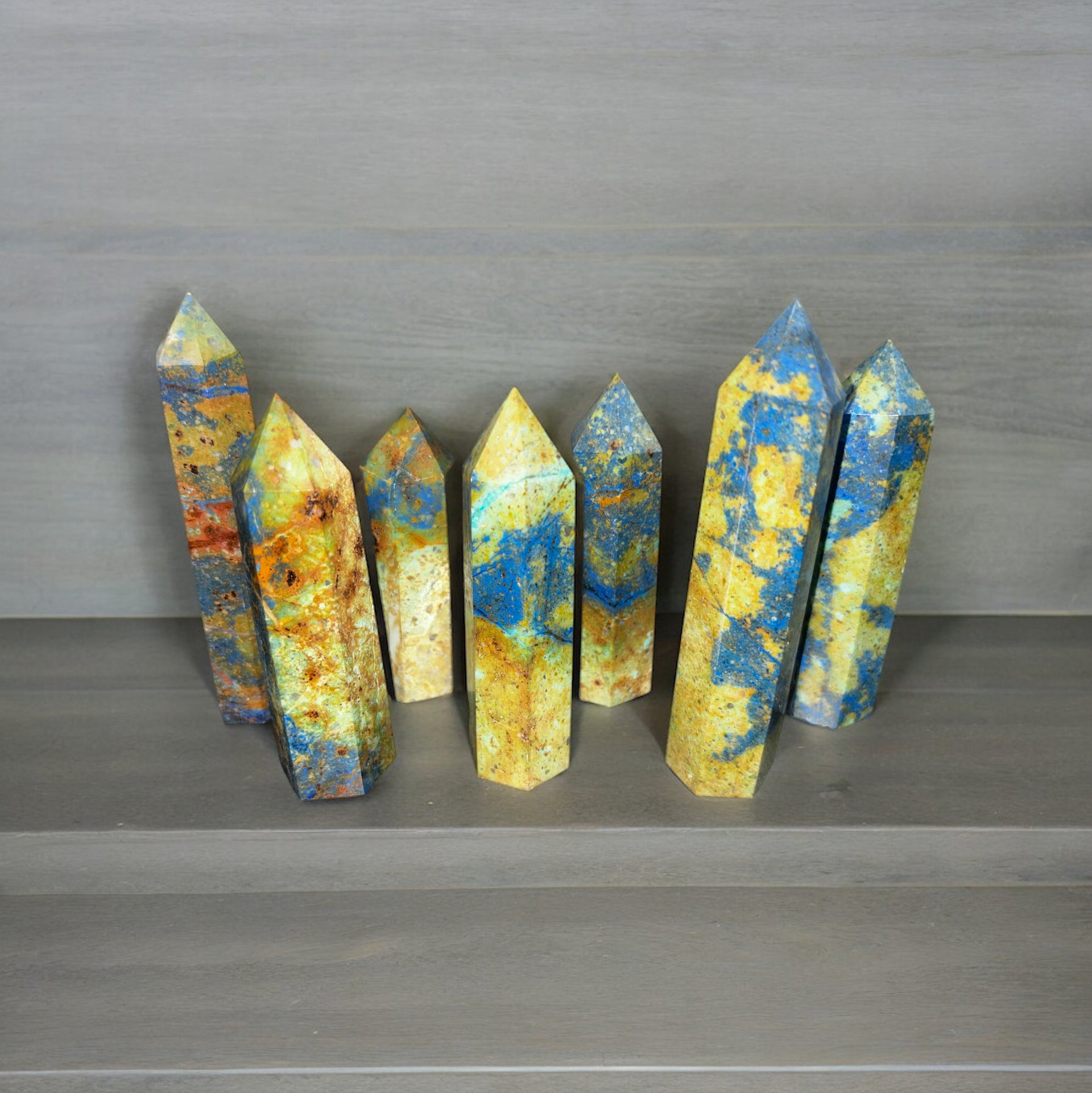 Upgrade your home decor with Azurite Towers. These elegant towers feature stunning Azurite stones, adding a touch of natural beauty to any space. Elevate your living space with the calming and positive energy of Azurite.