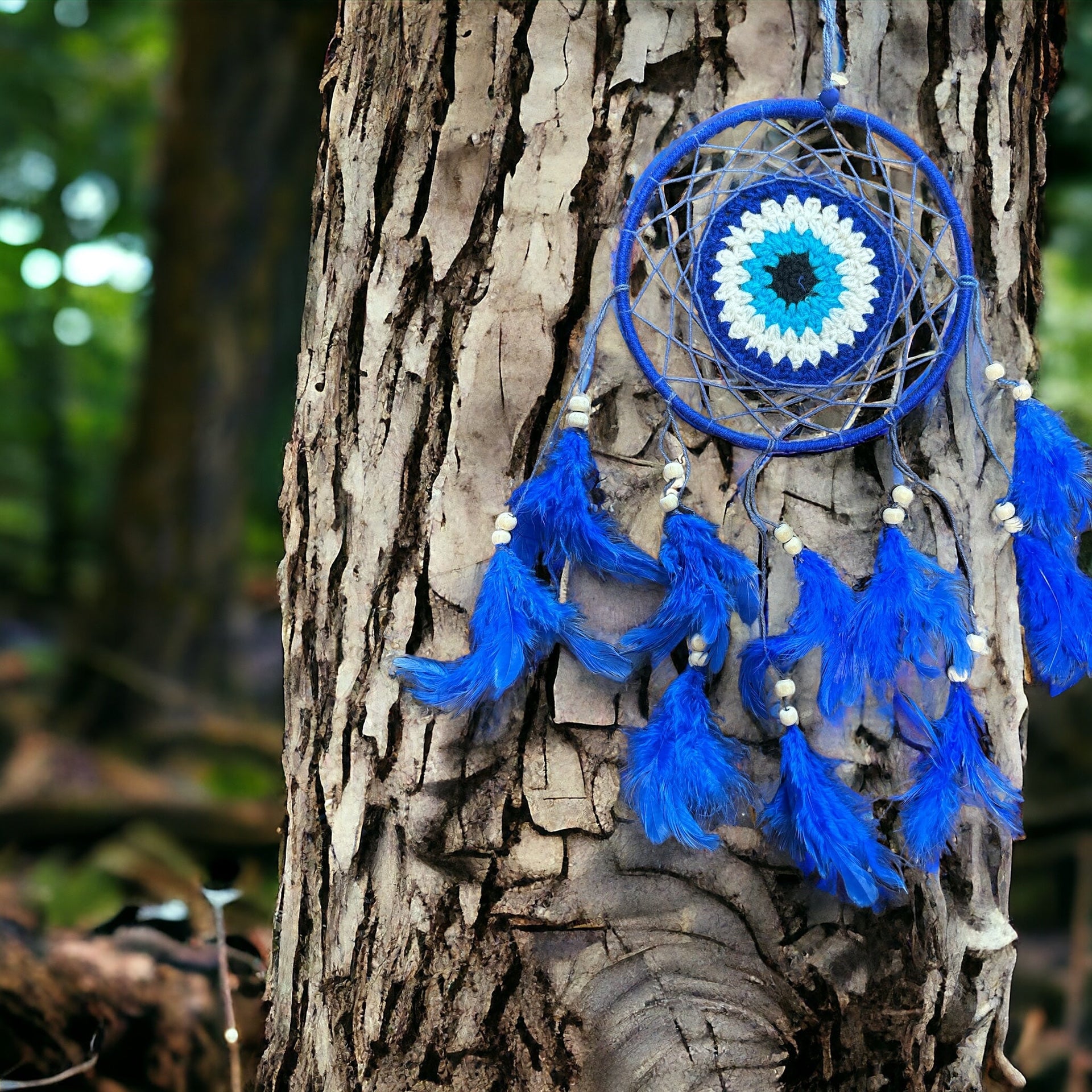 Safeguard your dreams and space with our Blue Evil Eye Dream Catcher. This unique piece combines the protective energy of the evil eye with the traditional dream catcher's ability to filter dreams. Hang it in your bedroom or workspace to ward off negative energies and ensure that only positive vibes and dreams have a place in your sanctuary.