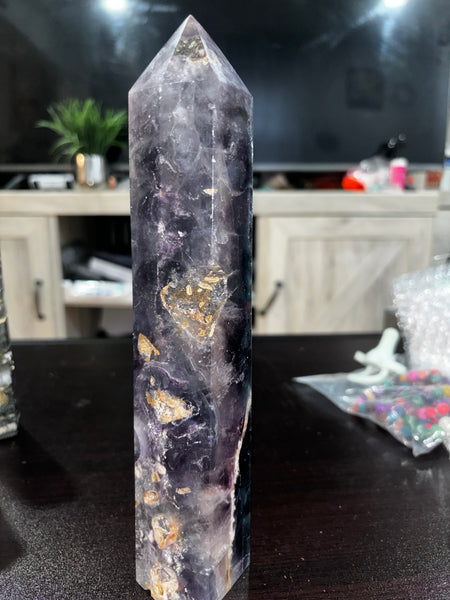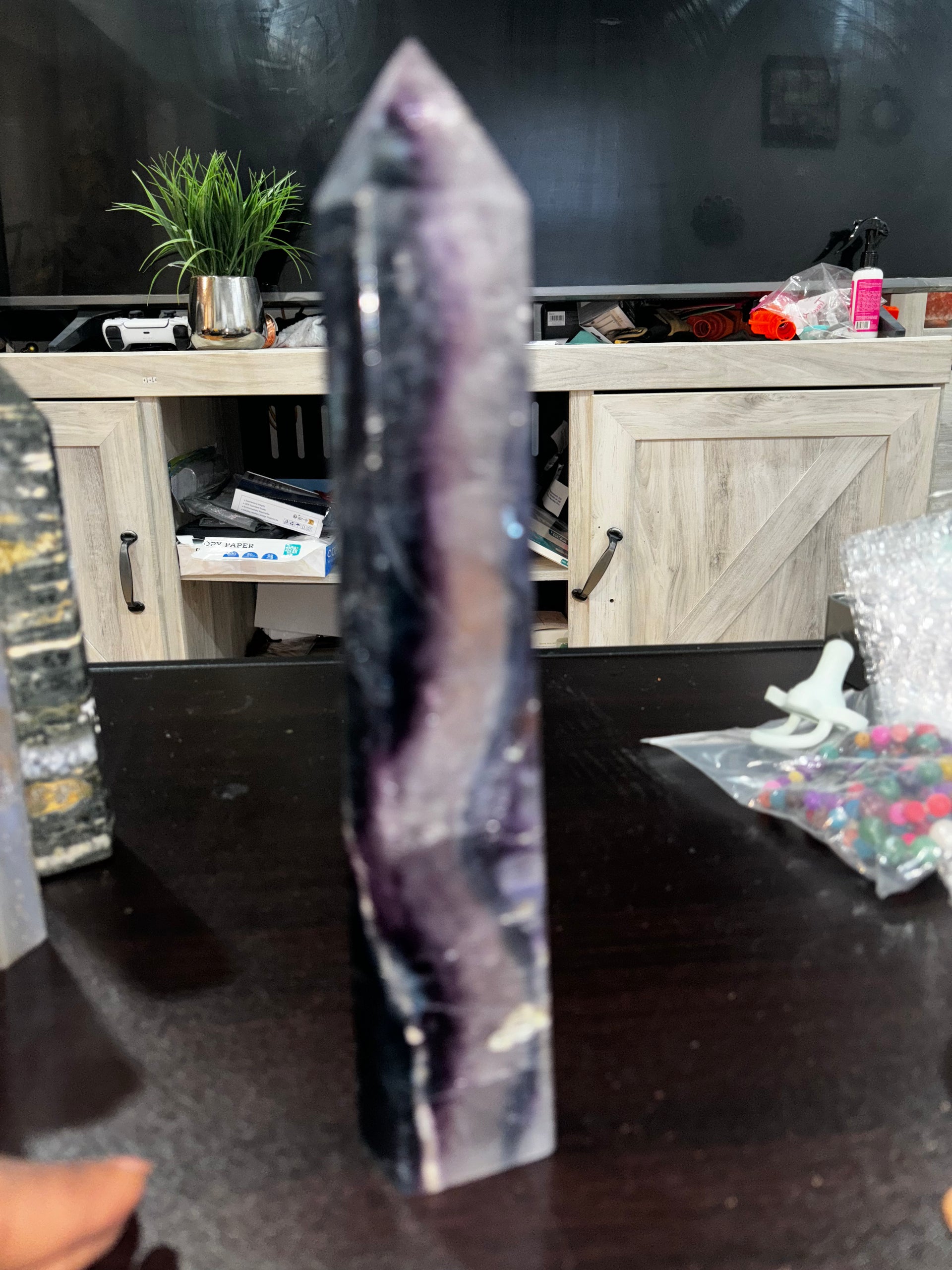 Enhance your home's positive energy with our Fluorite Tower. Made from genuine fluorite, this tower will radiate cleansing and healing energy, allowing you to feel more focused, calm, and balanced. Perfect for meditation or as a decorative piece, our Fluorite Tower is a must-have for any crystal lover.