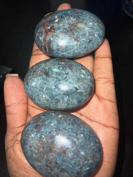 Our Kyanite Palm Stone is ideal for meditation and attunement. Kyanite helps to harmonize energy and instantly align all chakras, bringing tranquility and clarity to the mind. It encourages linear and logical thinking, facilitates dream recall and strengthens your connection to spirit guides. This special stone will never retain negative energy and is sure to provide you with the powerful spiritual and emotional healing you need.