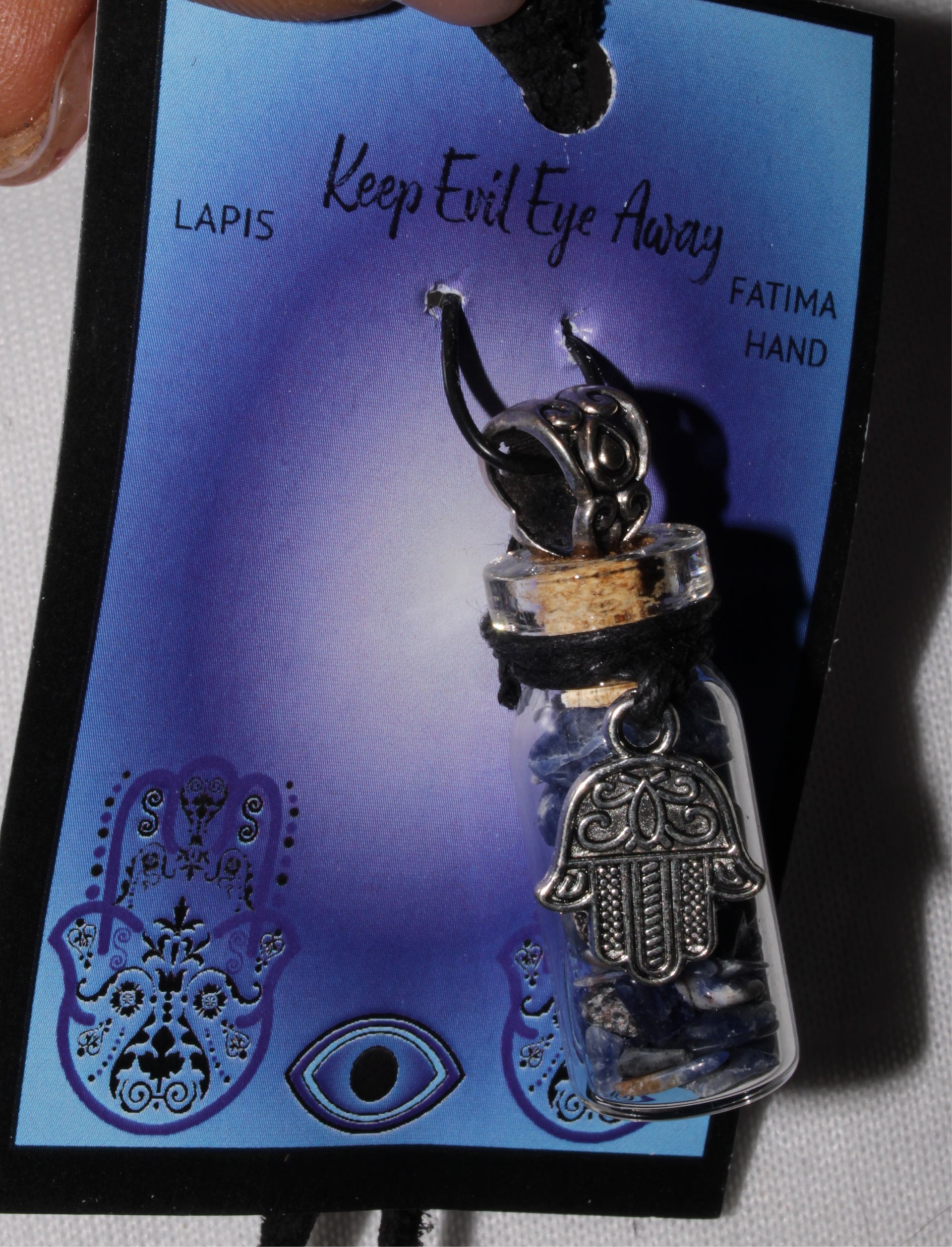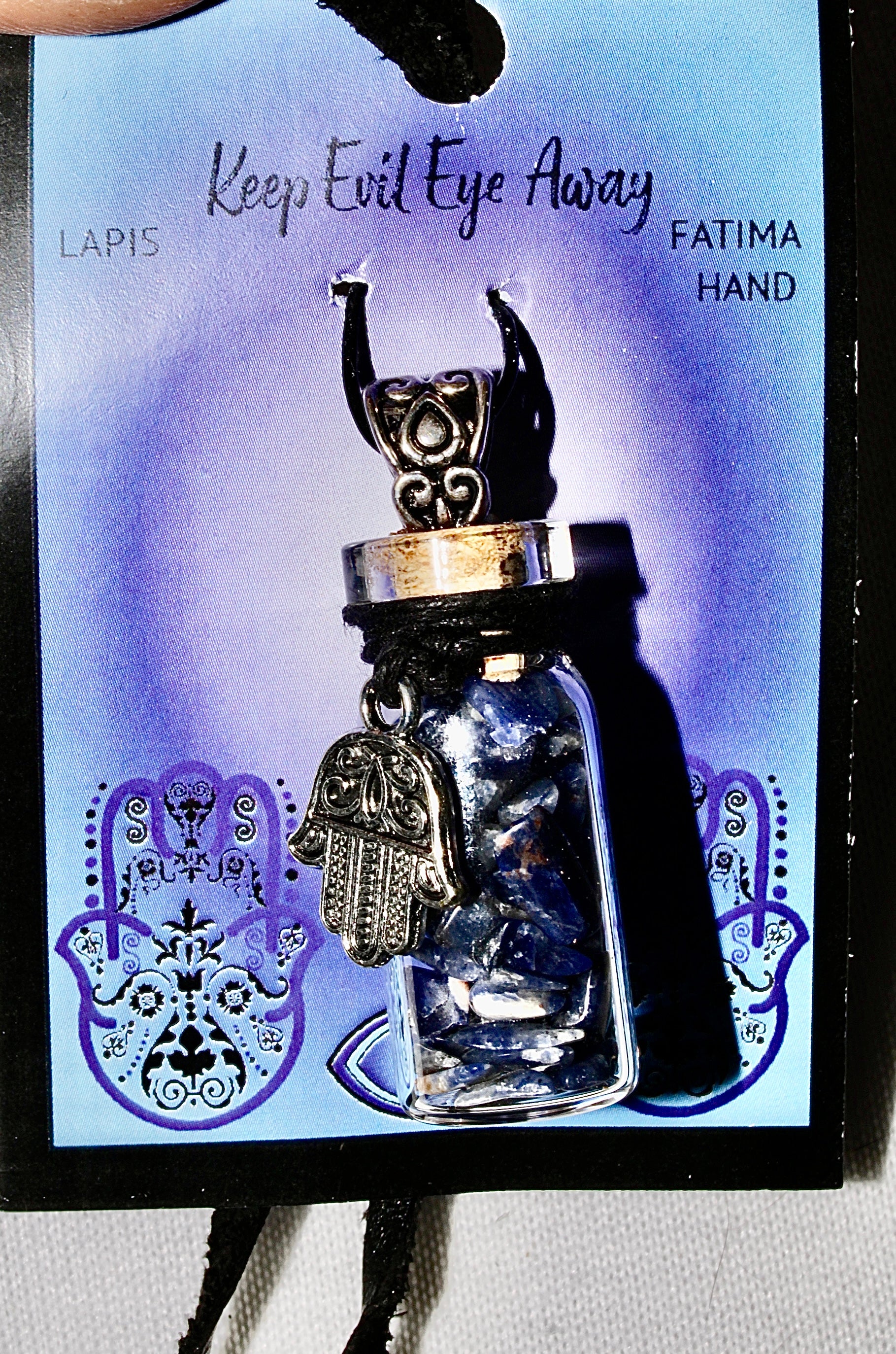Lapis Chips in a bottle with Fatima Hand Necklace