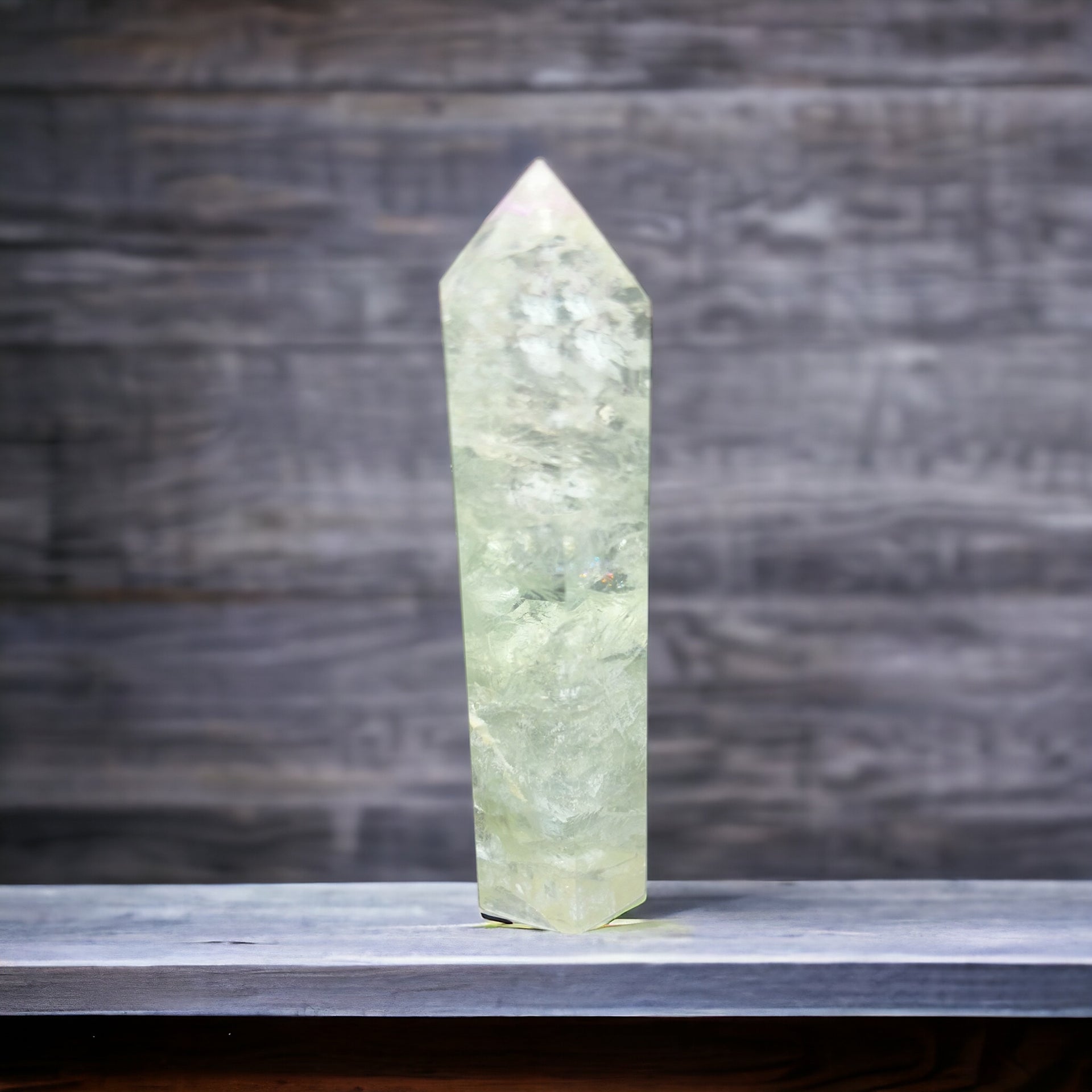 Illuminate your space with the gentle, healing energy of our Prehnite Tower. This elegant tower, with its soft green hue, is a beacon of unconditional love and calm. Prehnite is known for fostering a sense of peace and protection, making this tower a wonderful addition to any healing space, meditation area, or as a serene focal point in your home.
