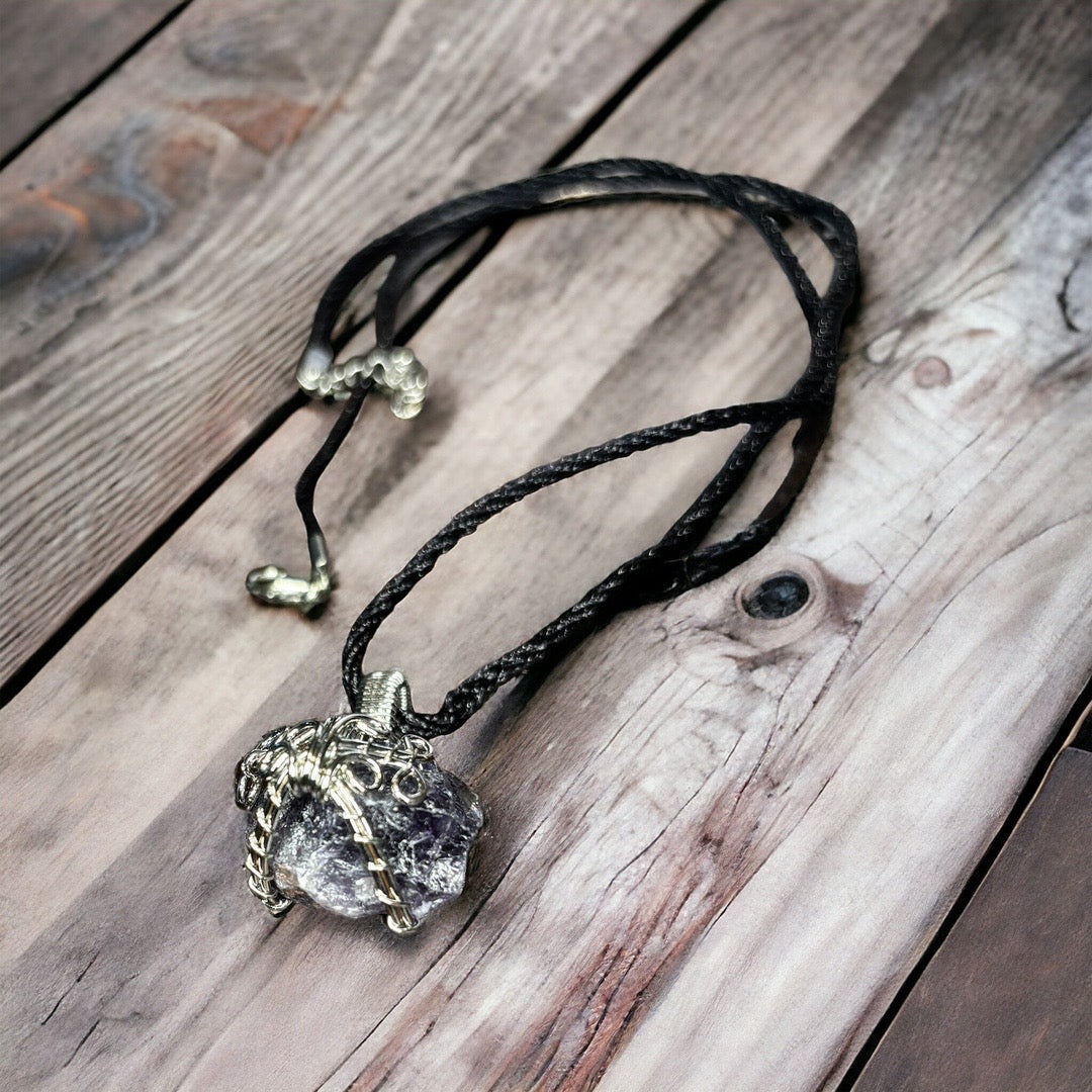 Carry a piece of tranquility around your neck with our Rough Amethyst Pendant. This raw, unpolished amethyst is a testament to nature's beauty, offering a connection to peace and spiritual wisdom. Each pendant is unique, just like its wearer, making it a deeply personal accessory for those seeking a calm mind and enhanced intuition