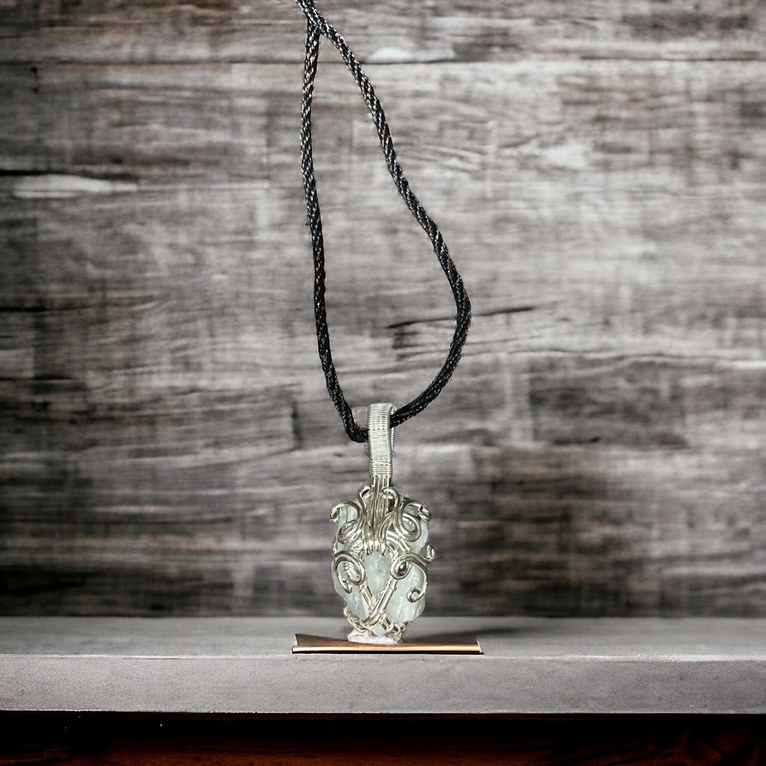 Embrace the mystical allure of our Rough Rainbow Moonstone Pendant. This enchanting gem, with its natural, raw beauty, is a gateway to deeper emotional understanding and spiritual harmony. Each pendant captures the moonstone's ethereal glow, offering a unique connection to the divine feminine and the magic of the moon.