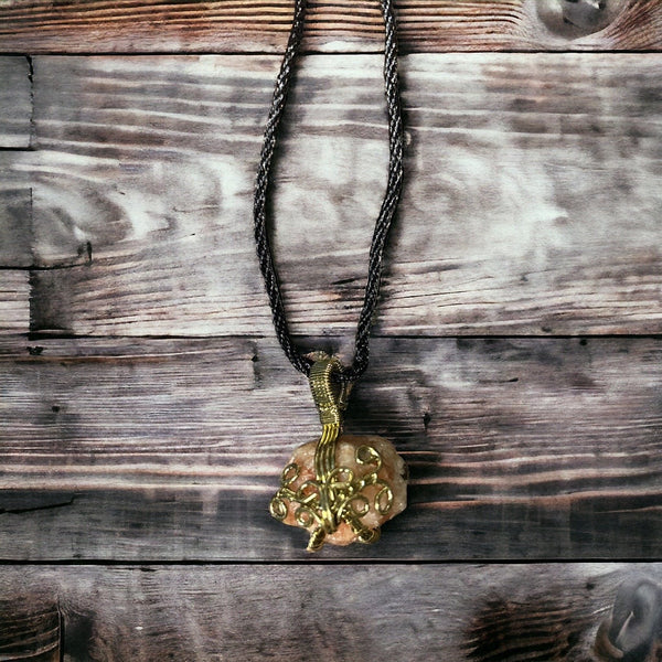 Embrace the joy and vitality of our Rough Sunstone Pendant. This vibrant gem, with its natural, unrefined beauty, is a celebration of positivity and empowerment. Sunstone is believed to invite good fortune and banish stress, making this pendant a perfect companion for those seeking a burst of energy and a touch of sunshine in their daily lives.
