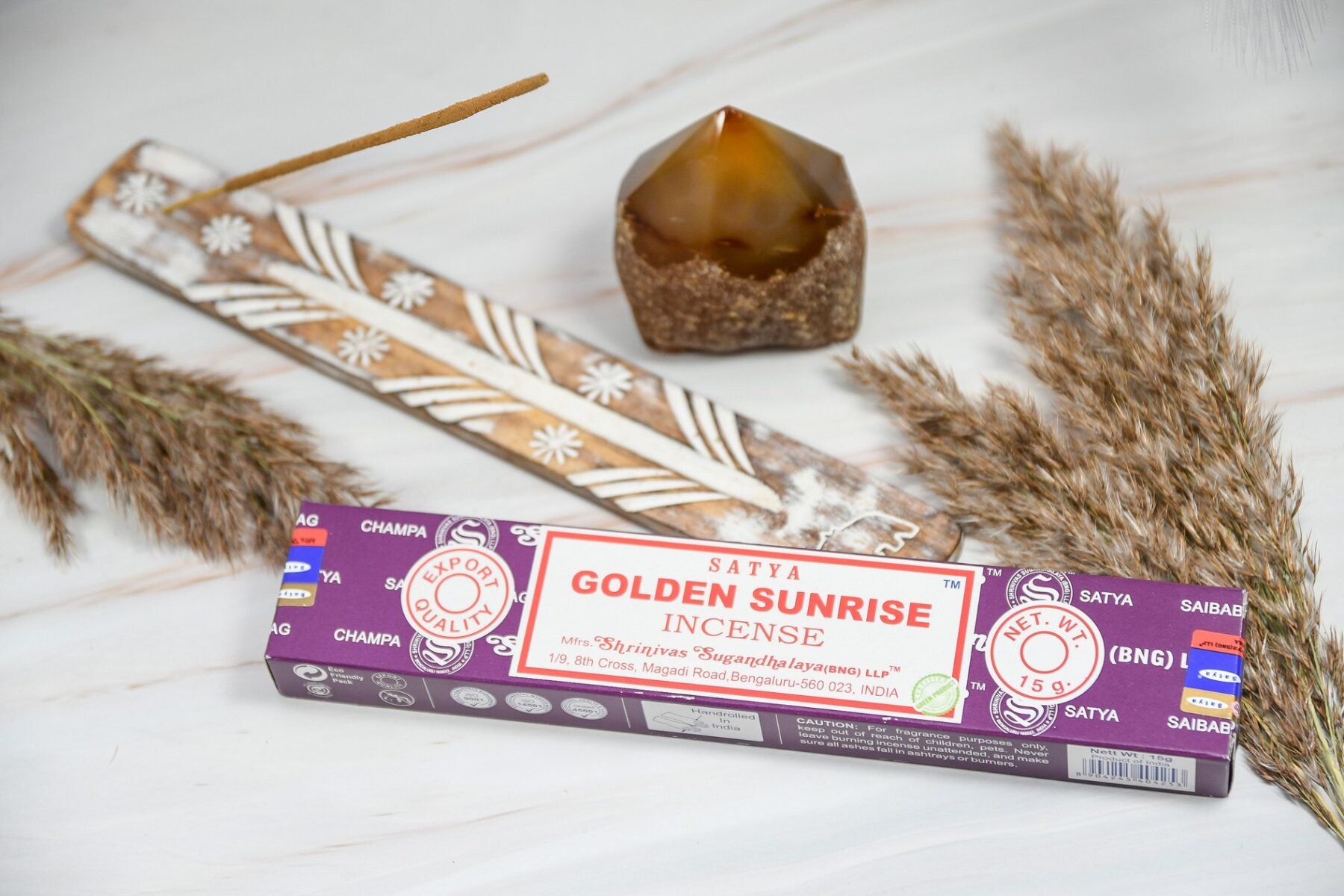 The scent of the Satya Golden Sunrise incense sticks is pleasant and uplifting. This handmade incense stick doesn't produce much smoke when you light it, and its mild aroma quickly permeates your room. With an alluring, oriental aroma that is floral and has the underlying note of vanilla, rose, and musk