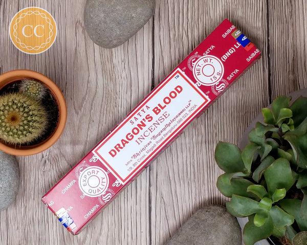 Satya's Dragon Blood Incense helps energize your psychic and spiritual center by shielding your aura from outside negativity and psychic attacks.